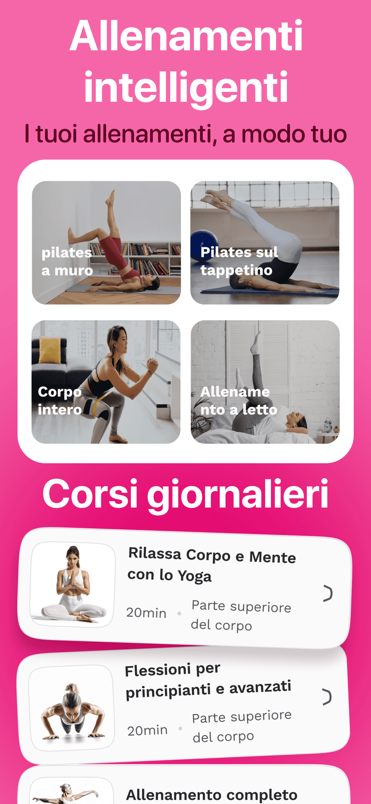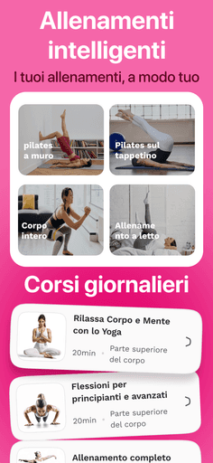 Allenamenti Personalizzati In Base Al Tuo Livello, Ai Tuoi Obiettivi E Al Tempo Disponibile. Scegli Tra Pilates, Yoga, Wall Pilates O Corpo Libero. Seleziona L’Area Del Corpo Che Vuoi Migliorare.